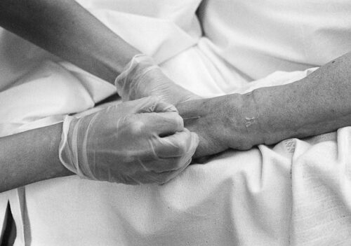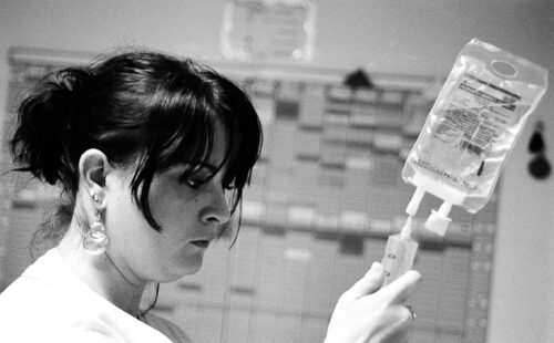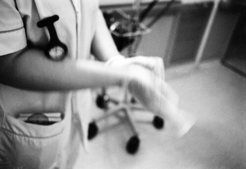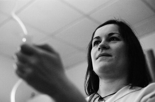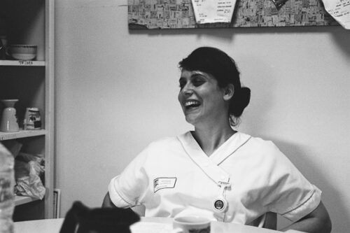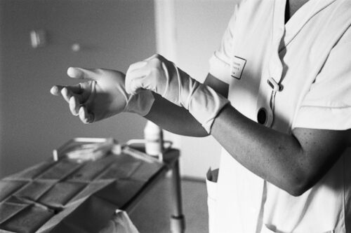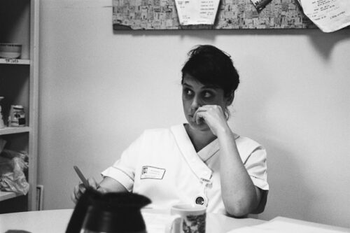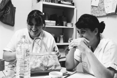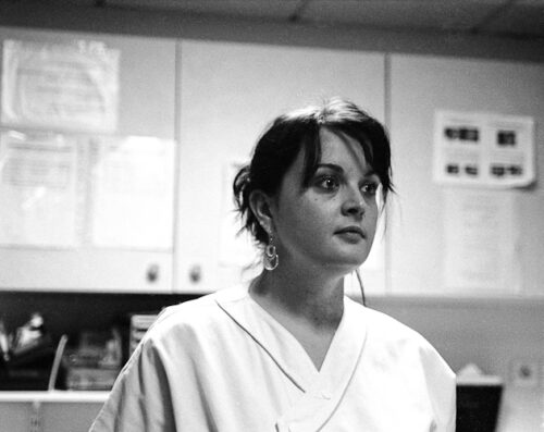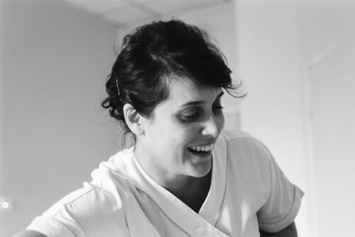 Hélène Mauri infirmière depuis sept ans est ensuite devenue photographe après trois années de reprises d’études à l’Ecole nationale supérieure Louis Lumière. Une opportunité de pouvoir revenir à l’hôpital et de rendre compte par l’image du quotidien des soignants dans un service de médecine, quotidien qu’elle avait vécu quelques années auparavant.